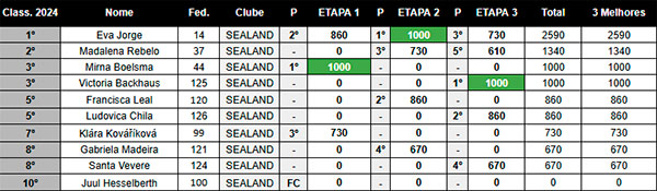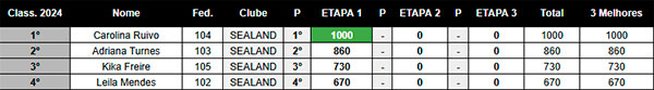 Já no feminino, com apenas uma etapa disputada, Carolina Ruivo selou as contas a seu favor quando saiu vencedora. Adriana Turnes, de Lisboa, termina o circuito na segunda posição, Kika Freira foi terceira classificada e Leila Mendes foi quarta classificada.