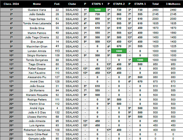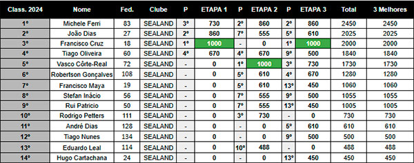 Competitivamente falando, Pedro Fernandes, Francisco Cruz, Victoria Backhaus, Simão Silva, Tomás Gonçalves e Vicente Mata saíram campeões da etapa, compondo as contas dos respetivos rankings.